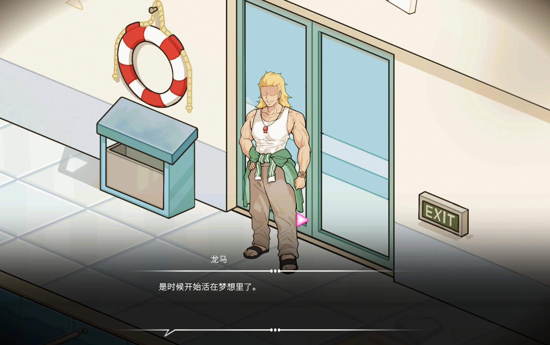 龙真的工作是管理游泳池,同时利用自己健硕的体格和充沛的精力,